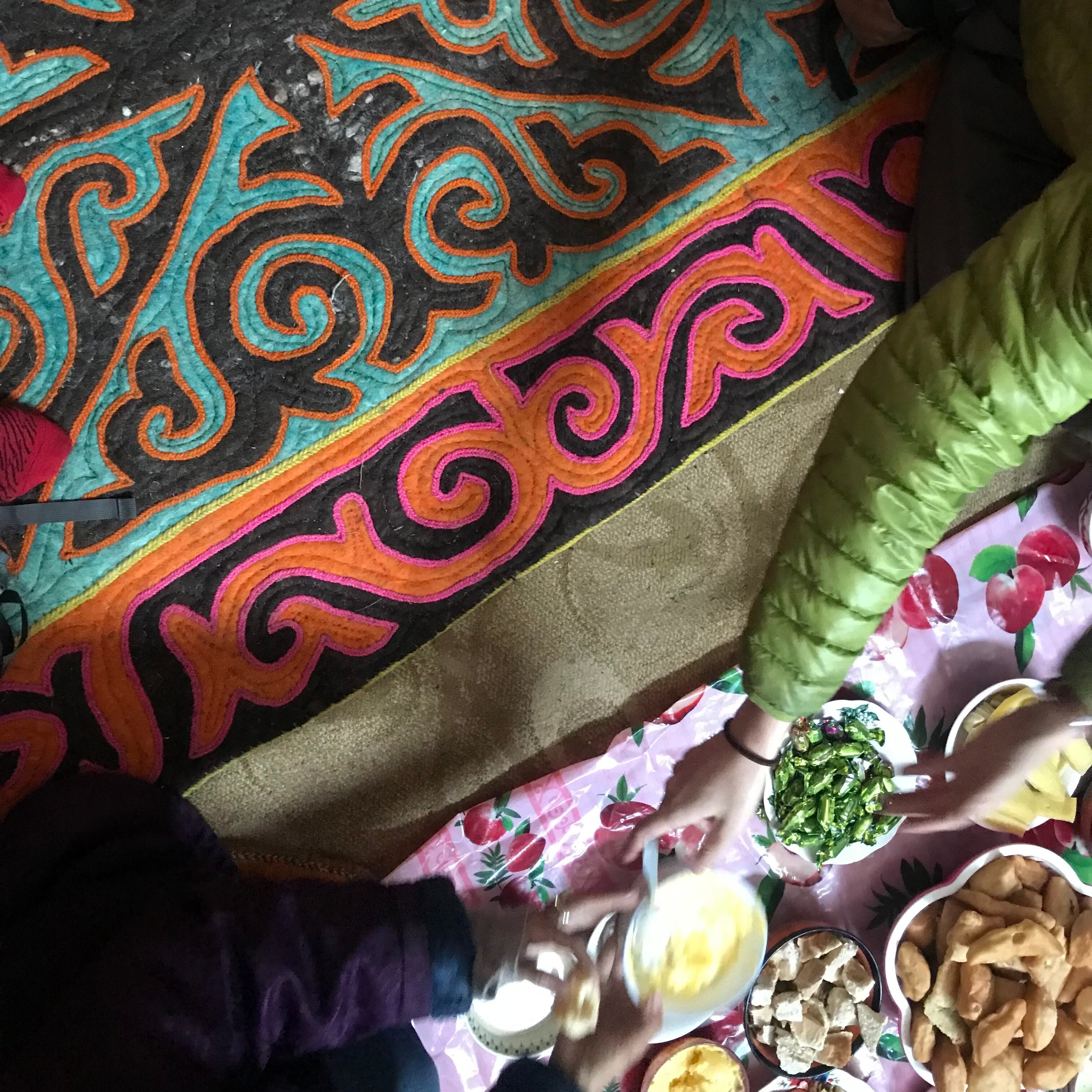最後2枚の写真は遊牧民の方のお家でスルマックが敷かれている様子です。