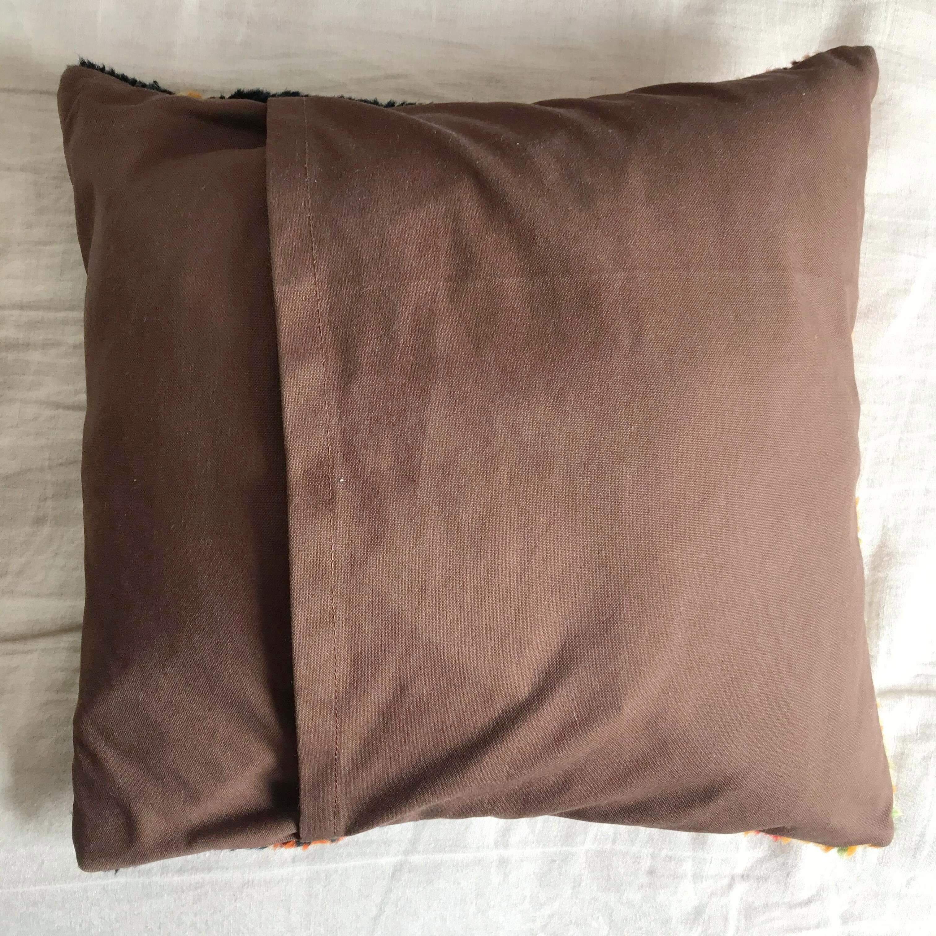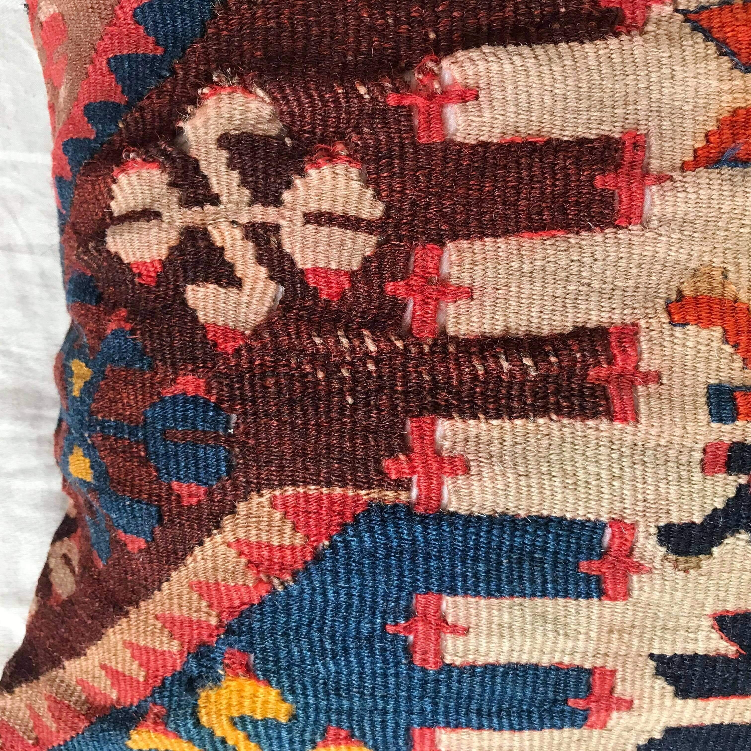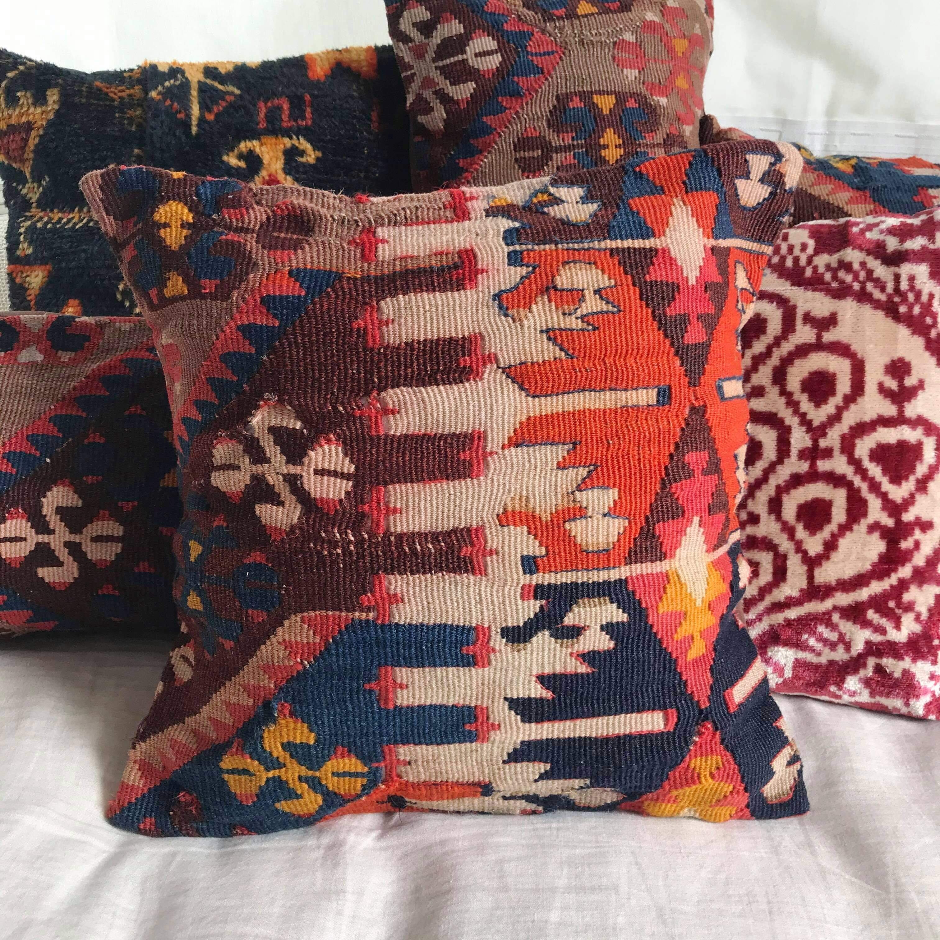 100年ほど前のキリムのため、痛みがある部分がかなりありましたが、そこを避け、使える部分を選んで、補修できるほつれ部分は補修して作っています。