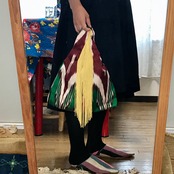 いつもはアフリカンプリントでファンキーなバッグを作って販売されているSUさんにお願いして、ノスノスリクエストのシルクロードの雰囲気でファンキーなバッグなどを作ってもらいました!